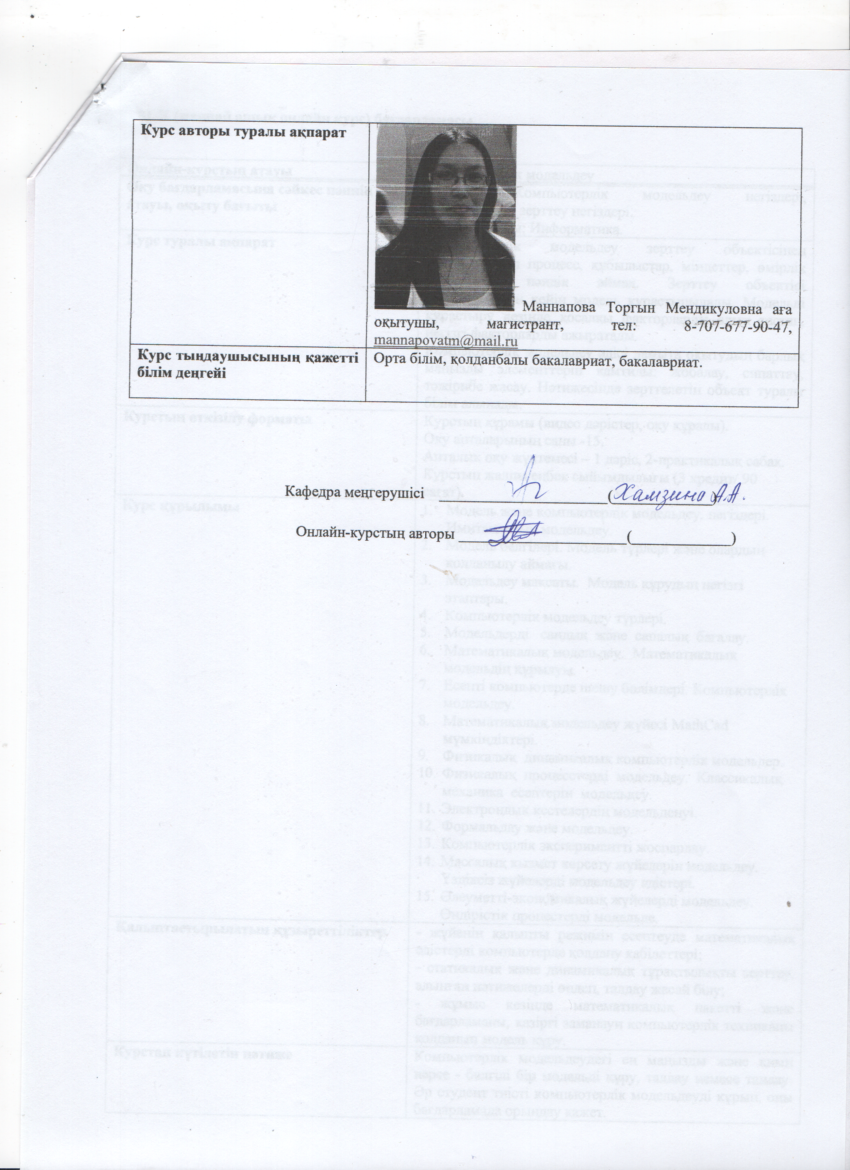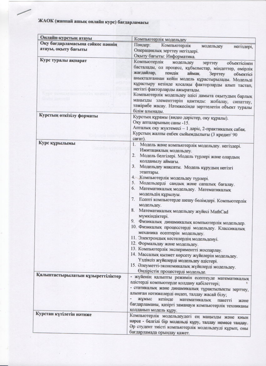Манапова Т.М Компьютерлік модельдеу 2022 ж.